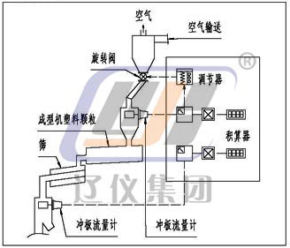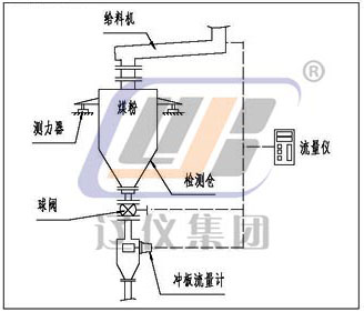 本儀表由(一次表)粉體沖量式流量變送器;(二次表)粉體沖量式流量儀;穩(wěn)流裝置(一般情況下,由生產(chǎn)廠指導用戶設計、制造)三部分組成(需流量調(diào)解時應配流量調(diào)節(jié)器),系統(tǒng)配套見下圖