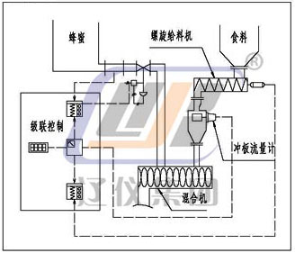 3、上溜槽無料時,即:料倉下料口下料不順暢時;發(fā)出報警信號提醒操作人員及時處理并控制給料機自動關閉,保證物料精確計量。回復后給料機自動開啟。