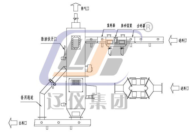 新鮮氧化鋁經(jīng)風動溜槽進入本系統(tǒng)。經(jīng)過分料器將物料分為兩路,分別進入除砂裝置,進行除砂后匯入集料器進入集料箱,在此除渣。氣體由排氣口引出,物料堆積到料位計時,開關控制給料器給料,沖板流量計開始計量,流量積算儀顯示瞬時流量、累計流量。流量大小可根據(jù)實際生產(chǎn)需要通過流量調(diào)節(jié)器設定,給料器自動調(diào)節(jié)。當集料箱無料時,料位開關控制給料器自動關閉。該過程消除了高壓風對沖板流量計的影響。物料經(jīng)沖板流量計的計量后進入下溜槽,直到凈化系統(tǒng)。當下溜槽發(fā)生堵料堆積到下料位計時,料位開關控制給料器關閉,避免下溜槽物料越堆越多,保持溜槽順暢,使生產(chǎn)有效均衡進行。